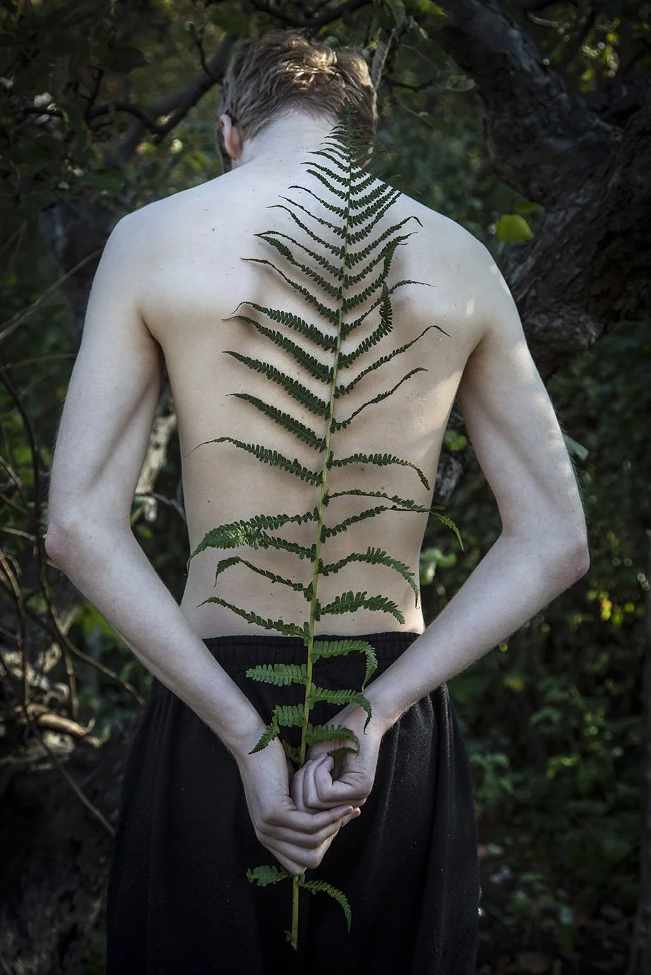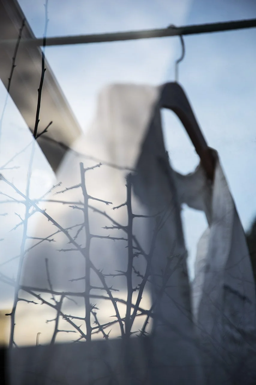 Kläder som mina anhöriga har burit - människor som inte lever längre - och kroppen som en resonanslåda för trädgårdens växter, de är elementen som jag har arbetat med i bildserien Resonans. Den handlar om minnen och det flyktiga i vår tillvaro.